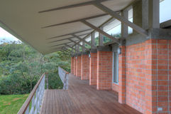 Destaca en esta casa el amplio deck que comunica todos los aposentos principales de la casa, con amplias puertas vidriadas, aportándoles una dimensión de amplitud. Este deck es el espacio habitable más importante por cuanto la vida familiar transcurre ahí y desde él se aprecia la amplia vista sobre la ciudad. Las colinas verdes y arboladas del entorno aportan un paisaje de quietud y de cercanía con la naturaleza excepcional. Finalmente, para llegar a esta casa se sube por un largo camino que va dejando atrás la ciudad y cuando se llega a ella se produce la sensación de haber llegado a un remanso.