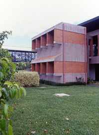 Xerox vendió su edificio y el nuevo propietario solicitó la transformación de la bodega en oficinas. Para darle un sentido a los 2000 m2 de oficinas, propuse un jardín interior como fuente de luz y bienestar y fue necesario abrir ventanas y construir entrepisos. Agregar a una estructura existente, es siempre una tarea difícil para el arquitecto. Existen antecedentes y los códigos ya están establecidos. A menos que la adición pretenda ser la protagonista, debería aparecer en congruencia con lo anterior. Cuando ambas partes han sido diseñadas por el mismo arquitecto, esta relación, en lugar de causar una posible tensión, puede producir un mutuo soporte y respeto. Es la oportunidad de adelantar ideas con el conocimiento de la experiencia pasada.